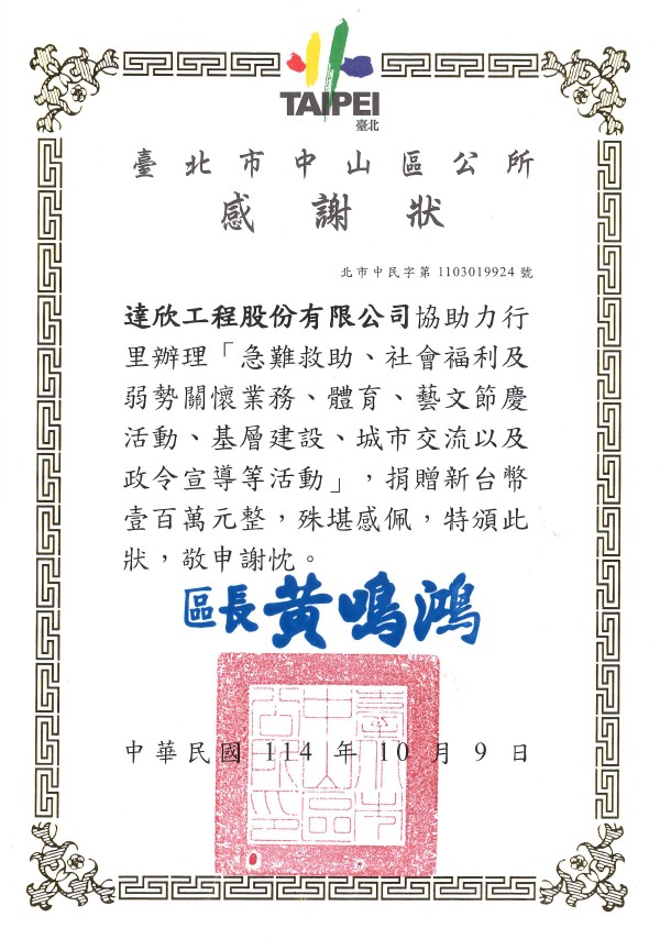 Certificate of appreciation for the donation of 【Morris Chang: An Autobiography】 to Chien Hsin University of Science and Technology.